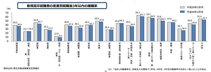 出典:厚生労働省(学歴別就職後3年以内離職率の推移)